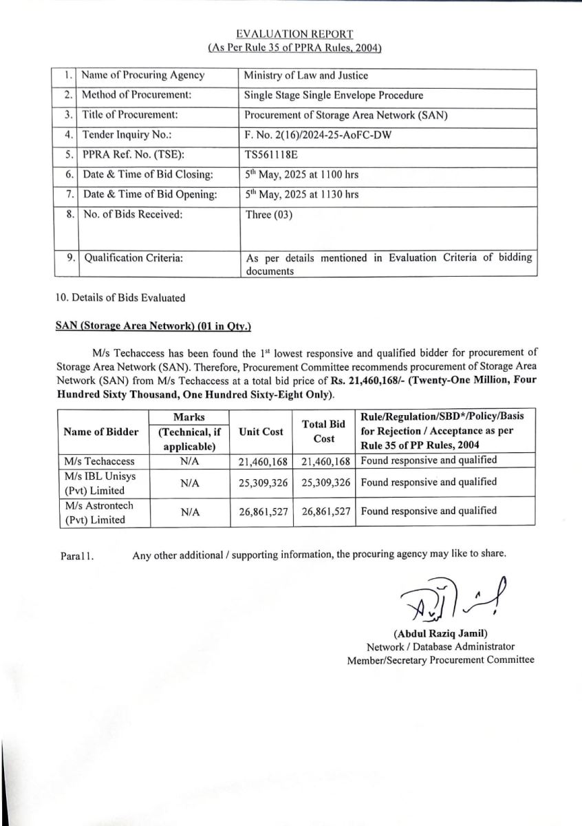 EVALUATION REPORT-PROCUREMENT OF STORAGE AREA NETWORK (SAN)