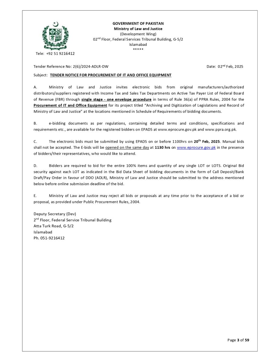 Tender Document for Procurement of IT and Office Equipment - ADLR - Feb, 2025